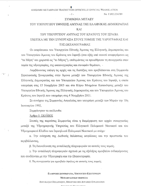 Δεν είναι πρώτη φορά που η Ελλάδα συνάπτει συμφωνία με το Ισραήλ. Αλλωστε το Ισραήλ έχει γερές βάσεις στην πατρίδα μας ξεκινώντας από την ίδρυση του Κ.Ι.Σ (Κεντρικό Ισραηλιτικό Συμβούλιο) που είναι ΝΠΔΔ Το Κ.Ι.Σ. Μέλη του απασχολούνται κυρίως στον ιδιωτικό τομέα (εμπόριο, βιομηχανία, κ.λπ.), στην επιστήμη και στη Δημόσια Διοίκηση. Γιατί όμως χρειάστηκε η Ελλάδα να προχωρήσει σε μία τέτοια συμφωνία με το Ισραήλ αφού στην Ελλάδη έχουμε τομείς υδρογραφίας-ωκεανογραφίας; Στους τομείς αυτούς είναι και η εξόρυξη πετρελαίου και ορυκτών υλών;